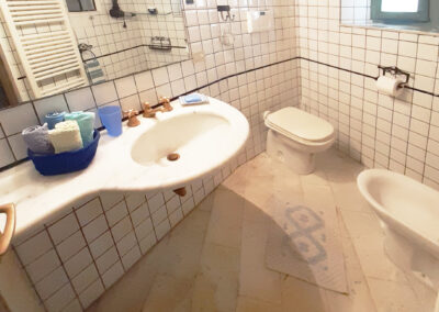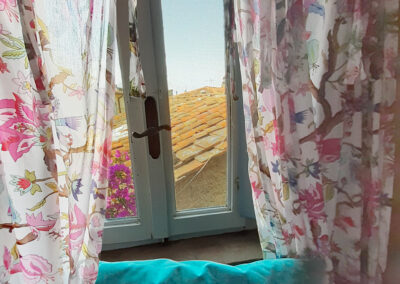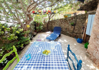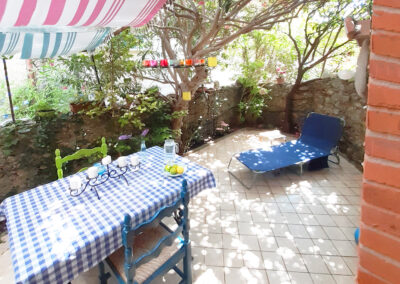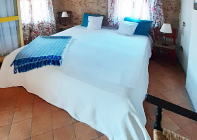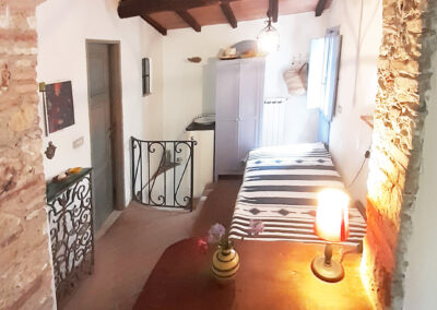 Auf der Terrasse sitzt man am Marmortisch, geschützt unter einer Pergola, oder man streckt sich inmitten von Oleander und Hortensien auf einer der beiden Sonnenliegen aus. Vom Wohnbereich führt eine Treppe ins Schlafzimmer. Dort schläft man in einem breiten Doppelbett auf bequemen Matratzen oder genießt den Blick über die Dächer von Montegggiori.