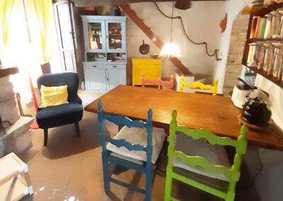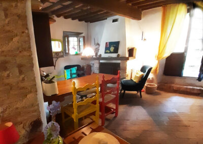 Eine Alternative für zwei bis drei Gäste zu Casa Berti, falls Sie lieber in einem Ort wohnen, ist die Villina d’Elsa. Das Häuschen liegt in dem mittelalterlichen, autofreien Dorf Monteggiori. Mit seinen gut 60 qm auf drei Etagen (jede mit einem eigenen Eingang!) nutzt man ein kleines, aber sehr gemütliches Reich. Unten betritt man die funktionell ausgestattete Küche mit Waschmaschine, Espressomaschine, großem Kühlschrank, Gasherd und allem, was man zum Kochen so braucht.