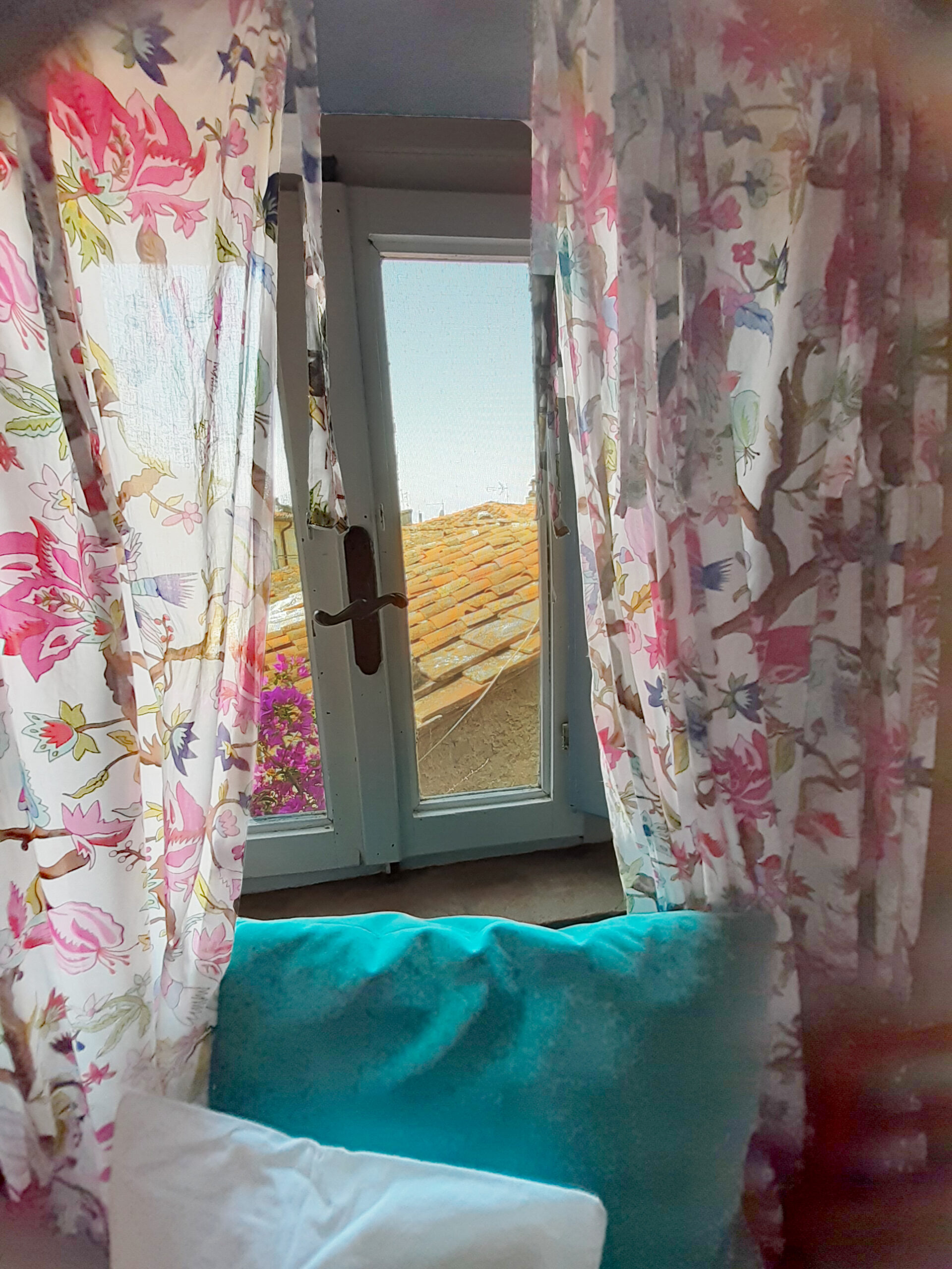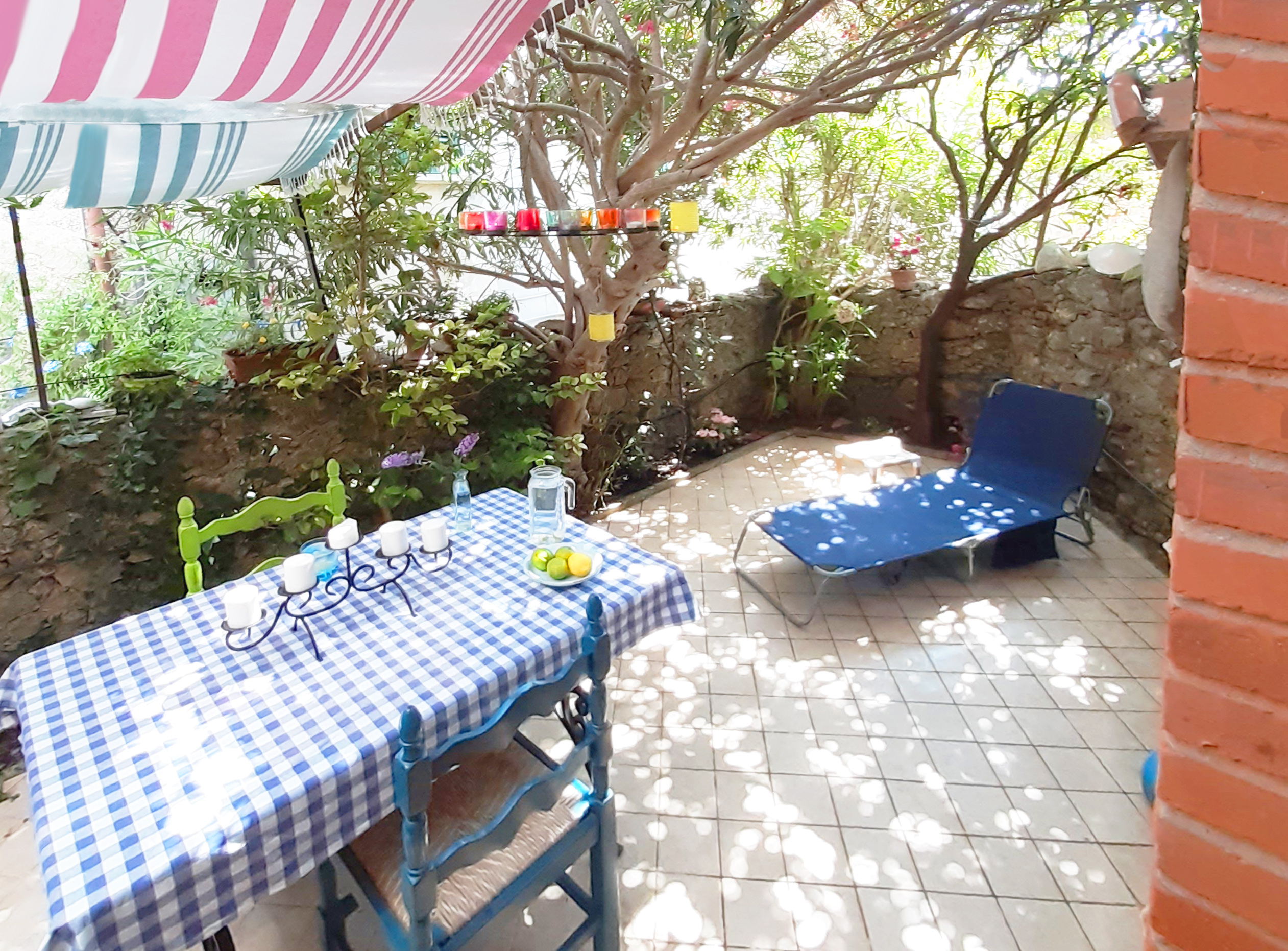 Auf der Terrasse sitzt man am Marmortisch, geschützt unter einer Pergola, oder man streckt sich inmitten von Oleander und Hortensien auf einer der beiden Sonnenliegen aus. Vom Wohnbereich führt eine Treppe ins Schlafzimmer. Dort schläft man in einem breiten Doppelbett auf bequemen Matratzen oder genießt den Blick über die Dächer von Montegggiori.